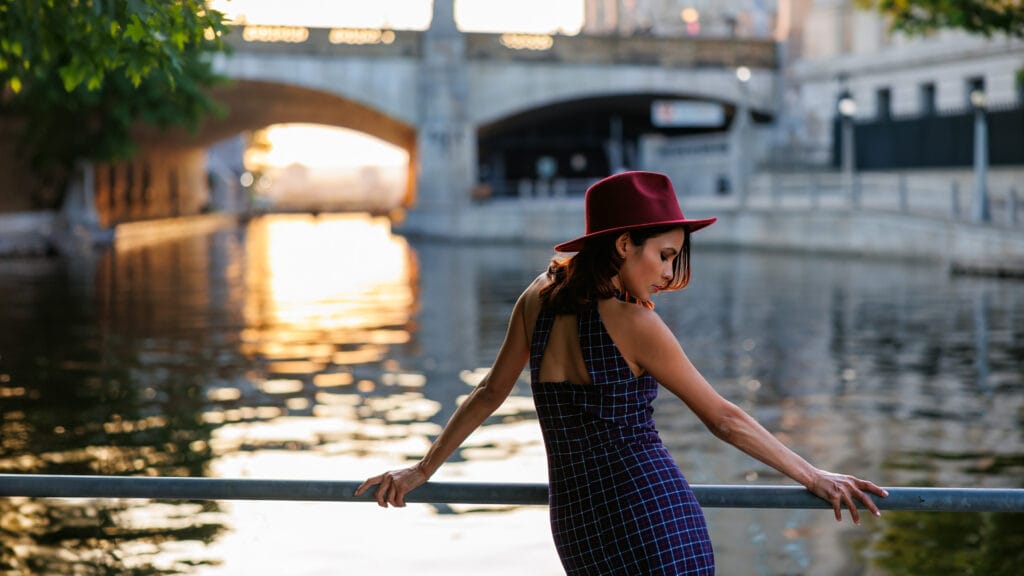 Apprends à reconnaître l’heure dorée, ce moment juste après le lever du soleil et juste avant son coucher, où la lumière est chaude, douce et directionnelle. Par temps nuageux, la lumière est diffuse et flatteuse pour les portraits. En plein soleil, cherche l’ombre ou oriente ton sujet de façon à éviter les ombres disgracieuses sous les yeux. Observe comment la lumière change au fil de la journée dans des lieux que tu connais bien, dans les parcs de l’Outaouais ou dans les rues du Vieux-Hull. C’est un apprentissage constant.
